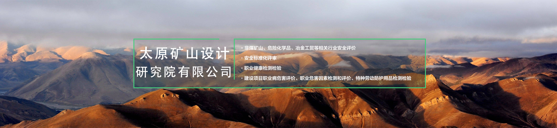 公司主要從事礦山采選尾工程設計、智能化及自動化礦山、建設綠色礦山、工程技術(shù)咨詢、規(guī)劃設計管理、施工勞務分包、土地規(guī)劃、地質(zhì)災害治理服務、安全生產(chǎn)技術(shù)服務、軟件開發(fā)及測繪服務;煤礦、非煤礦山設計;煤礦、非煤礦山、危險化學品安全評價(業(yè)務范圍:煤炭開采業(yè);金屬、非金屬及其他礦采選業(yè);石油加工業(yè),化學原料、化學品及醫(yī)藥制造業(yè));非煤礦山、冶金等工商貿(mào)企業(yè)、危險化學品從業(yè)單位安全生產(chǎn)標準化評審;公共場所衛(wèi)生、生活飲用水、公共場所集中中央空調(diào)通風系統(tǒng)的檢驗、檢測、評價;職業(yè)健康檢測檢驗;建設項目職業(yè)病危害評價、職業(yè)危害因素檢測與評價;安責險技術(shù)服務;業(yè)務培訓等工作。